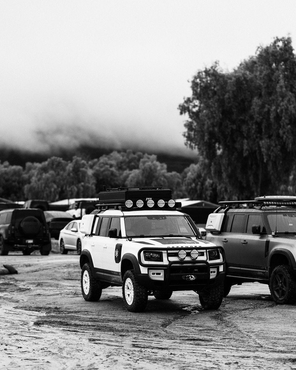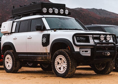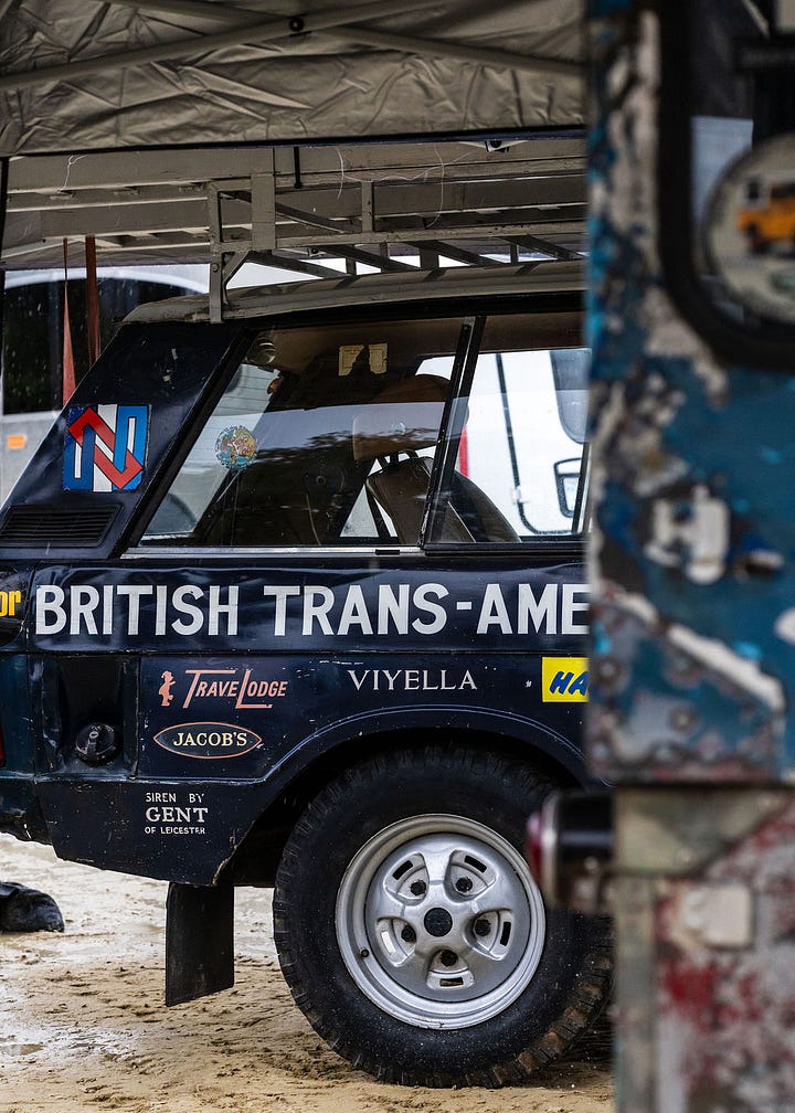 As evidence, I present the owner’s showcase lot. Within, there were dozens of Defenders, new and old. Nearly all were heavily modified, and rigs ranged from a resto-modded 6x6 vintage pickup to a serious-looking 110 dressed up in Proton Sports livery. While ogling this 110, the owner - Charles Darling - showed up and happily answered my wonderings.