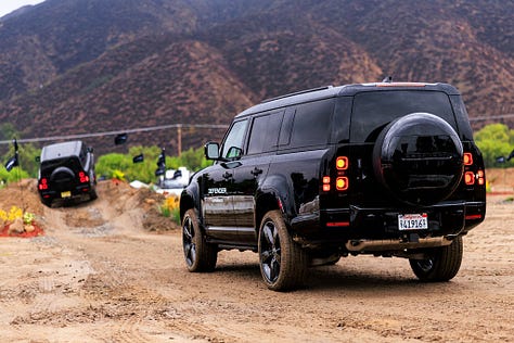 Upon arrival at the Destination Defender grounds, we immediately got behind the wheel of a new Defender 130. For the uninitiated, like myself, this is a big SUV. Think Chevy Tahoe in length, with room for 8, and a super boxy profile. Very cool and also very nice inside.