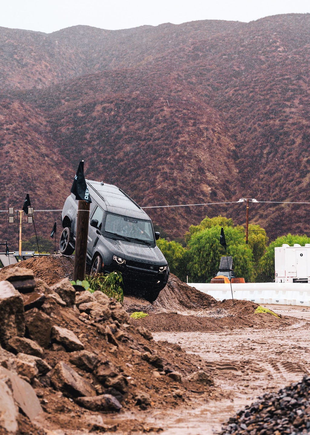 Over a series of rocky paths, deeply rutted berms, and generally challenging closed-course conditions, he helped me navigate the Defender and take in some of its off-road tech. Like a display showing your roll angle. At 22 degrees, I questioned Eric if we were about to tip over.