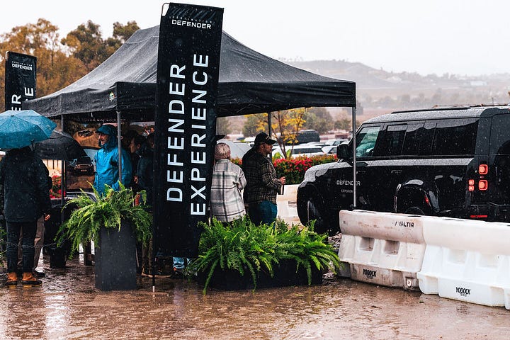 According to Defender Brand Director Sam Allen, literally every Destination Defender - including the one in Malibu - had been on a rainy day. This could be seen as a bummer, but personally, I loved it. My brother Tyler, who brought his professional photography skills to the event, captured some stunning shots as a result. Did it require me to hold an umbrella over his gear while he guided me around by the elbow like a toddler? Yes. Was I bothered? No.