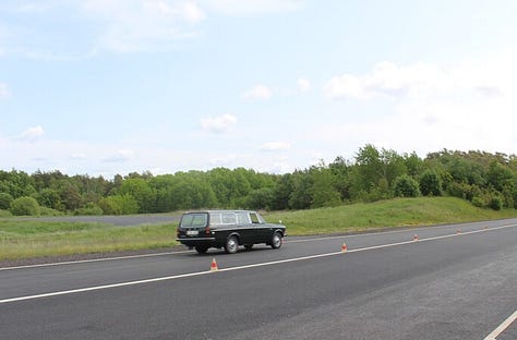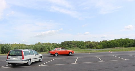 Picture this: A 65-degree day, partly cloudy with plenty of sun, and a finely finished ribbon of asphalt winding through the woodsy backyard of Volvo’s campus in Gothenburg, Sweden. Parked out front, a row of 14 kick-ass vintage Volvos from the company vault, ready to be driven. Of course, these weren’t just any old Volvos. Each was selected for having debuted an important safety innovation in the past. From the 1960 PV 544 to the 1973 1800 ES and the 1995 850 wagon, there were many impressive vehicles.
