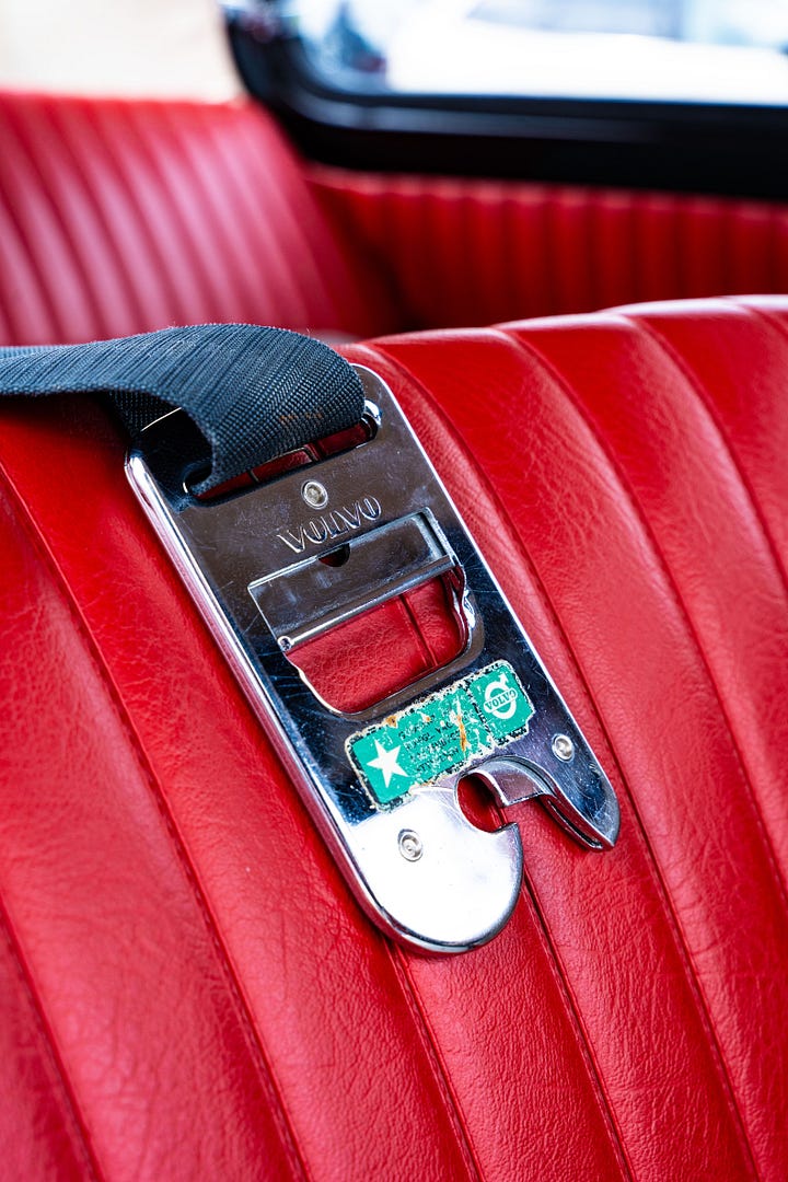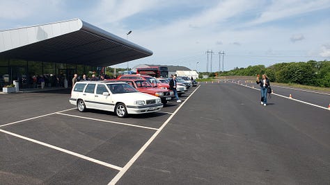 Naturally, I immediately blanked on what made these Volvos special from a safety perspective as we were given effectively free rein to take them for a spin. One that jumped out at me was a red 1984 240 wagon with a stick. Wow. That classic boxy shape, the big airy cabin, and three pedals? Yes and please. Immediately calling to mind the 240 wagon my college roommate arrived at school in, replete with big cabinet speakers mounted in the trunk, driving this Swedish long roof was a highlight. As was the 850, and the 145 wagon, and the…well, really, all of these heritage Volvos were excellent in their own right.