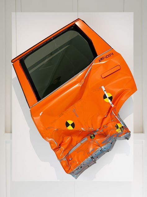 Which is when a third EX90 rocketed out of that long, dark tunnel and slammed full-bore into the driver’s side door of the original SUV. I’ve watched plenty of crash-test videos, but seeing it in person was much gnarlier. It’s worth noting that the energy from that crash was 30% higher than the most severe side-impact test required in standardized testing. “Safety beyond the stars”, get it?