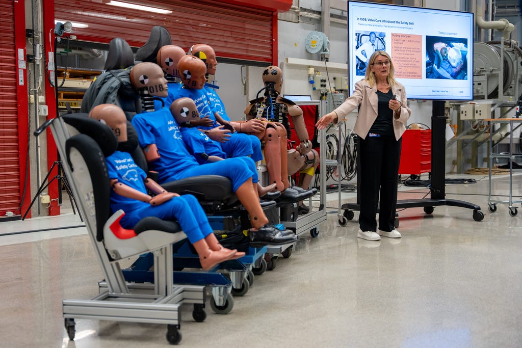 Volvo has a life-size moose crash-test dummy because, as Anders Bell, Chief Engineering and Technology Officer, said, “This is Sweden.”