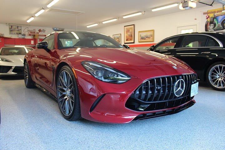 From the street, or sidewalk, there is a long driveway culminating in a garage. Far enough away that you have to take a hard look, but close enough to catch an occasional glimpse of glistening sheetmetal when the door is up. Is that an AMG GT I spy? Doth mine eyes see a Bentley?