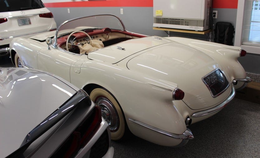 One of two 1954 Corvettes under Dennis’ care, this is a car that deserves recognition. For one thing, it’s more than 70 years old and looks damn good. For another, it is the godfather of America’s Sports Car, responsible for kicking off generations of world-class Detroit performance. Which leads us to the C8.