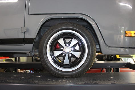 Right out of the gate, there is an excellent VW Doka finished in gray with 15” Fuchs, Carrera graphics, and a Porsche tailgate emblem. The cabin is done up in stunning red 911 style with a matching red canvas roof and get a load of the engine bay on this thing. Replete with TNT soda can!