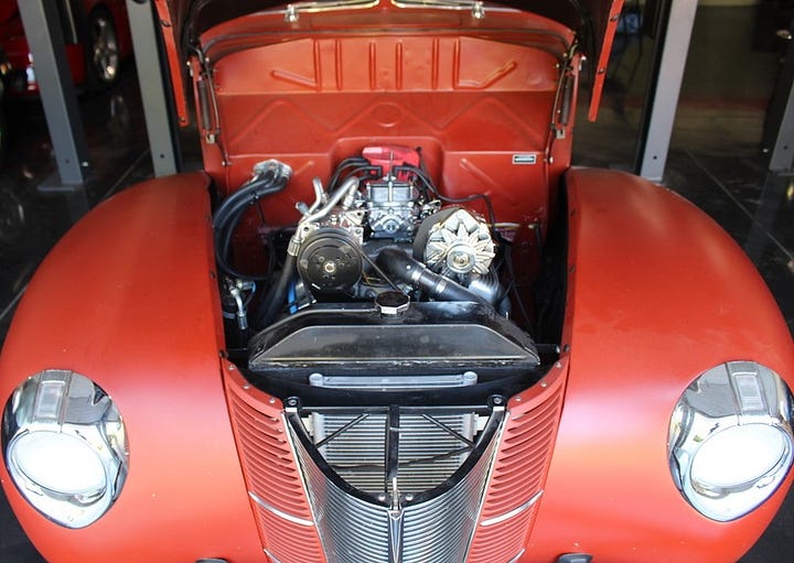 I once saw a lime green vintage VW bus in excellent condition exiting said driveway. It had my head buzzing with wonder at what else might be lurking at the end of this driveway. All of which led me to a decidedly old-school outreach effort - a hand-written note - that resulted in a meeting with my neighbor. His name is Dennis and he is the consummate car guy.