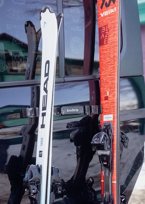 Plus, by loading the skis into these magnetic racks, the kids can grab them when they’re ready and put them back at the end of the day, all neat and tidy. I’m pretty sure you’re not supposed to drive to and from the slopes with the SnoStrips externally affixed, but it has mistakenly happened, and I’m happy to report, they’re still with us.